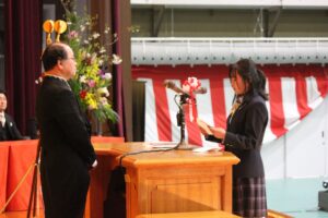 学校長より中学校第1学年70名,高等学校第1学年438名の入学が許可され,新入生は新たな一歩を踏み出しました。