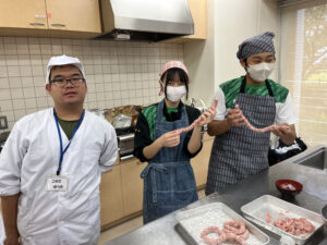 10月15日(火)から17日(木)にかけて,中学1年生が実践交流会を実施しました。今回は,「あゆみ」「こッから」「ひまわりの家」の3つの福祉施設を訪問し,施設の皆さんと協力してさまざまな活動を行いました。