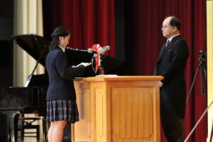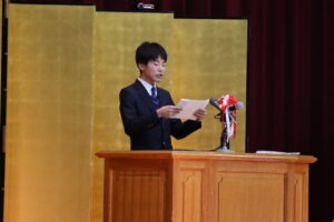 式の中では、在校生を代表して現生徒会長が送辞を述べ、また元生徒会長が卒業生代表の答辞を述べました。
