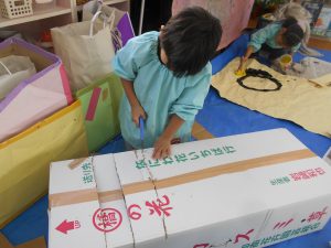 今年度最後の絵画製作でした。すみれ組にとっては幼稚園最後の絵画製作でした。みんな、おもいっきり楽しめたかな? すみれ組             ばら組                    さくら組       2学期最後の給食でした。 みんなでリズム室で食べました。