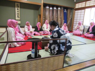 茶道体験では、茶道部の皆さんが丁寧に手ほどきをしてくれましたので、ディ校の生徒さん達も嬉しそうに文化体験を楽しみました。