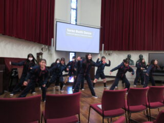 国際交流委員会のメンバーが密かに練習を重ねた「ソーラン節ダンス」を披露すると、ディ校の皆さんは大喜びで盛り上がってくれました。