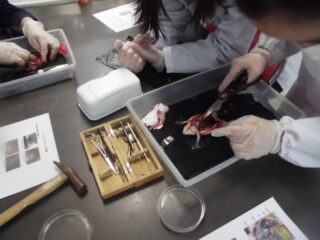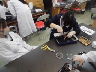 最初は慣れない作業に不安な様子もありましたが、いのちやからだのつくりについて考えることができました。短い時間の実験でしたが、貴重な体験をすることができとてもよかったです。この経験を高校生になっても活かしてくれることを期待しています。