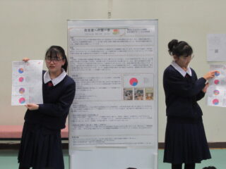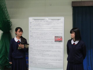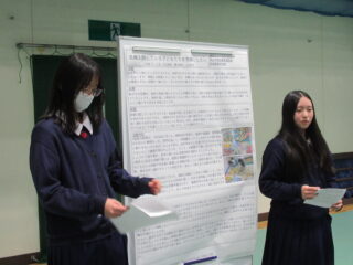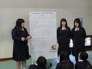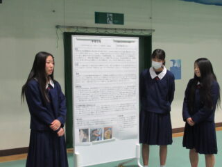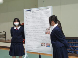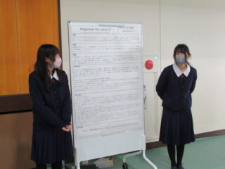 中学校3年生は、それぞれの班が立てたテーマをもとに1年間、プロジェクトに取り組み、その成果をポスターの形でまとめました。