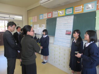 中学校では理科2、高校では数学A、歴史総合、英語コミュニケーションⅡ、シナジータイムの授業を見学していただきました。