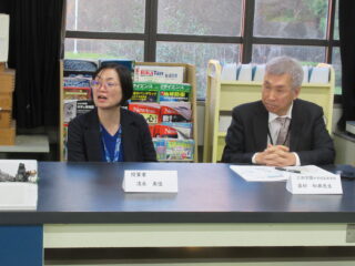 また、成果発表として、中学3年生、高校2年特設連携コースの生徒たちがシナジータイムの授業での活動報告を行いました。
