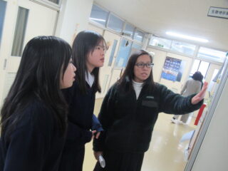 教員と訪問団の先生方とのミーティングの他、代表生徒による学校案内や授業見学が実施されました。