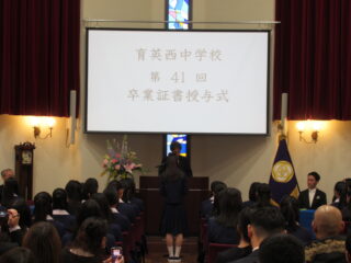 育英西生として立派に成長した卒業生は、3年間の思い出を胸に式に臨みました。