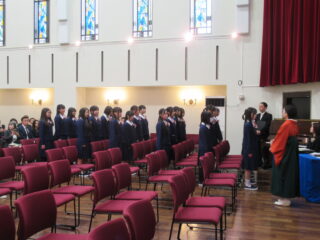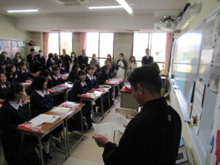担任の先生からのお話や卒業生一人ひとりからみんなに向けてスピーチがありました。