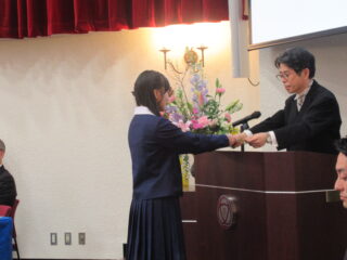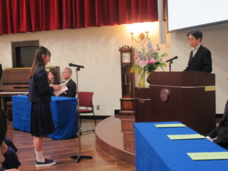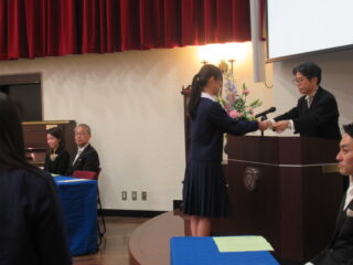 私たちは次のステージへ進みます。進む道はそれぞれ違いますが、ひとつひとつ乗り越えていきましょう。」と、保護者や周りの支えてくださった方々、卒業生のみんなへの感謝を述べました。