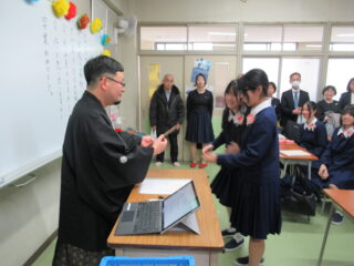 中学校3年間の学びや思い出を胸に、これからの人生が笑顔の多いものとなるよう願っています。」とお話されました。