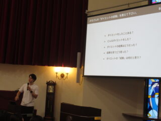 計太さんはパーソナルジム(ボクノジム)を経営し、これまでにたくさんの人のダイエットをサポートされてきました。その経験から、過度なダイエットが将来に及ぼす影響を、ダイエットに一番興味のある中高生のみんなに伝えたい、と熱意を持って、授業を進めてくださいました。