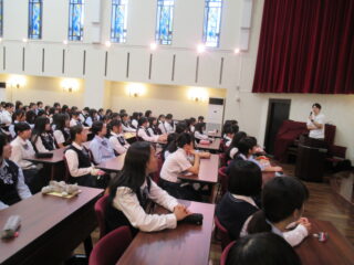9月30日(火)2限目小講堂にて、高校特設連携コース・特設文理コースの1年生に向けて、