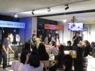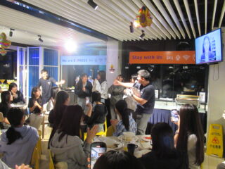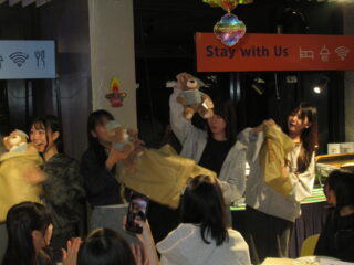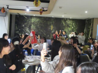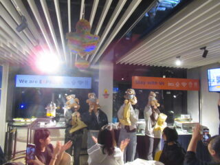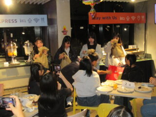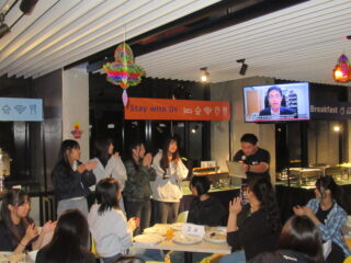 ・夕食の最後に、この研修旅行中に誕生日を迎えた4人を、全員でお祝いしました!