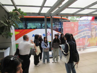 ・ウーロンゴン大学に到着し、学生さん達から出迎えを受けています。