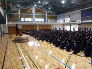 久しぶりに全校生徒が体育館に集まりました。