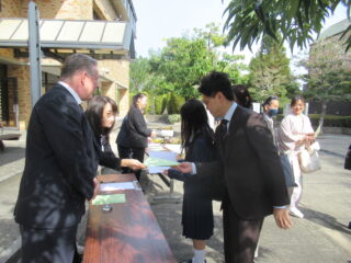 その後、各クラスのH.R.に移動して、担任の先生から自己紹介と、所信表明、これから始まる学校生活についてのお話がありました。
