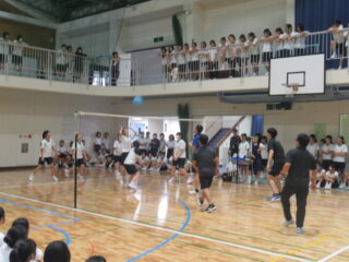 全学年の生徒が応援する中で、生徒も先生も本気でぶつかり合う白熱した好試合になりました。