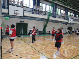 競技はソフトバレーボールで、チームに分かれてクラスの全員が出場します。